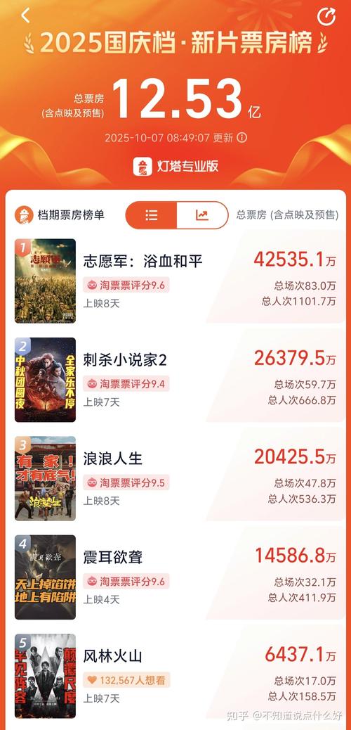 2025国庆电影档实时票房领跑者是谁?头部影片票房差距有多大? 2020年的国庆档(10月1日 - 10月8日)是中国电影市场的一个里程碑,因为它是在全球新冠疫情影响下,全球首个成功举办的、大规模、高票房的电影档期,被业界称为“史上最强国庆档”,以下是2020年国庆档的实时票房追踪和最终数据汇总:核心数据概览档期总票房: 52亿元人民币观影人次: 15亿市场热度...