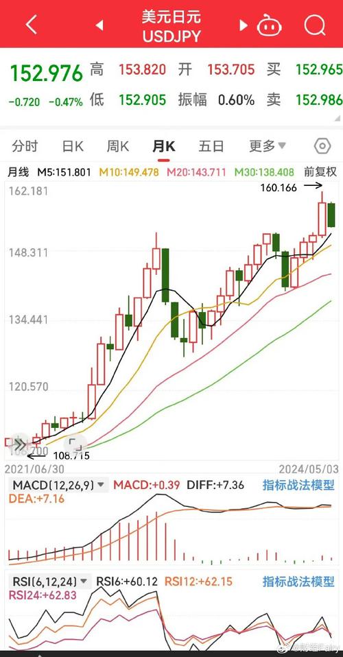 - 历史高位:156.15这个水平是近几十年来的高点,上一次USD/JPY达到如此高位还是在上世纪90年代末和2000年代初。