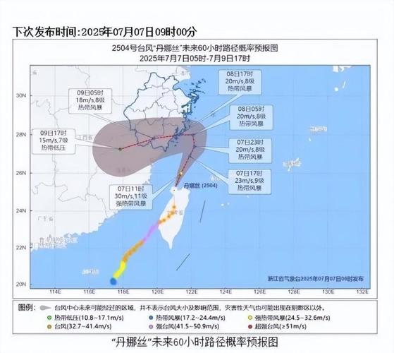 - 路径二(偏向东): 沿着台湾岛东侧海面向北移动,在台湾省北部沿海擦过,然后在浙江中南部沿海登陆。