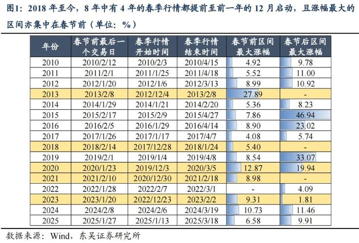- 历史统计胜率高:回顾过去十几年的A股历史,虽然每年情况不同,但“春季躁动”或“春季行情”出现的频率较高,Wind等金融数据终端的统计显示,上证指数在1-4月期间上涨的年份占比超过60%,这种历史惯性会强化市场参与者的预期。
