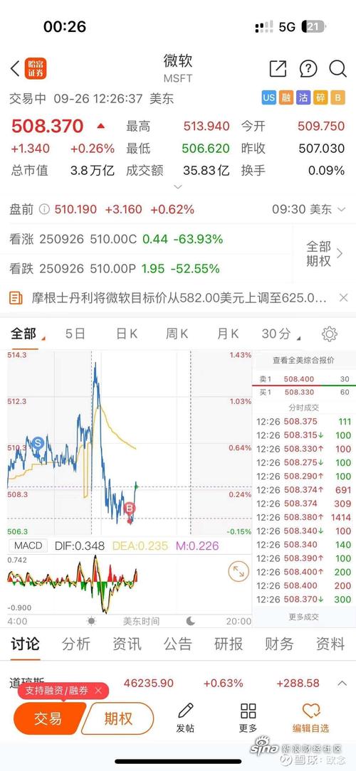 微软美股实时行情最新价多少?