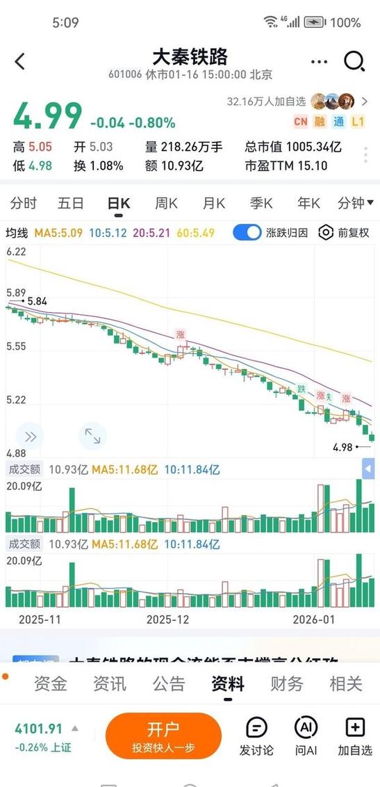 - 操作方法: 打开APP,在搜索框输入 “601006” 或 “大秦铁路”,即可看到分时图、K线图、资金流向、盘口信息等详细数据。