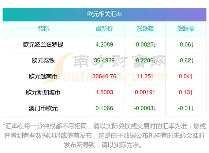- 国际外汇市场汇率: 这是最根本的因素,由欧元区经济状况、欧洲央行政策、全球政治经济形势等决定。
