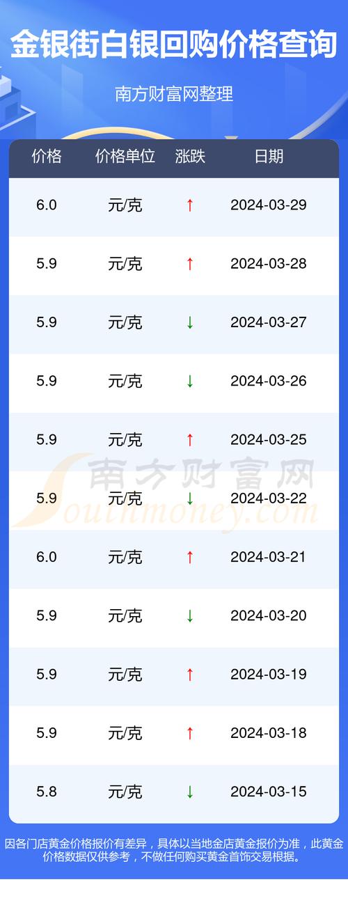 贵金属价格实时变动,以下数据为当前可获取的最新信息,仅供参考,实际交易请以您的交易平台或银行实时报价为准,核心实时行情 (截至 2024年5月24日 14:30)国际现货白银 (X... 贵金属价格实时变动,以下数据为当前可获取的最新信息,仅供参考,实际交易请以您的交易平台或银行实时报价为准。
