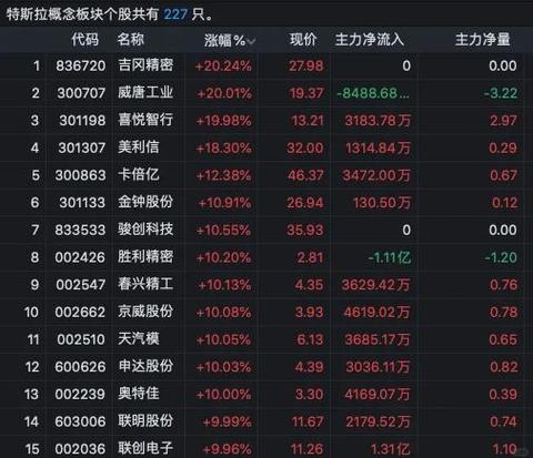 - 股价表现: 特斯拉股价本身是A股概念股的“风向标”,特斯拉股价大涨,通常会带动A股相关概念股跟涨。