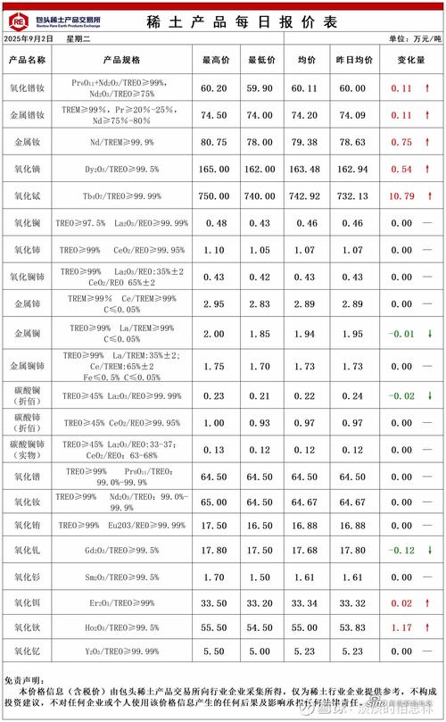 - 价格指数: 可以关注中国稀土价格指数,它是反映国内稀土市场整体价格水平的重要指标。
