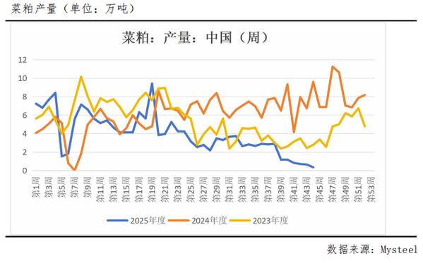 - 国产菜籽供应偏紧:国产油菜籽已经进入尾声,市场预计产量有限,且持粮主体惜售,导致国产菜籽价格坚挺,直接支撑了菜粕的压榨成本。