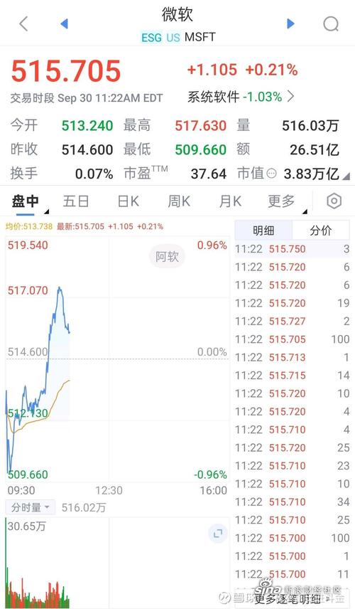 微软股票实时行情最新价多少?