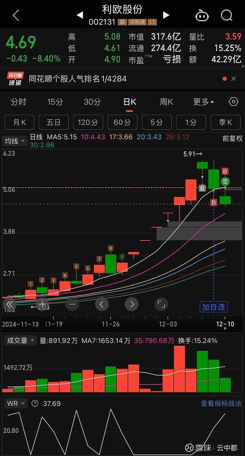 - 均线系统: 股价目前运行在5日、10日、20日等多条短期均线下方,但尚未跌破关键的60日或120日中期均线,这表明短期趋势偏弱,但中期上升趋势尚未被完全破坏。