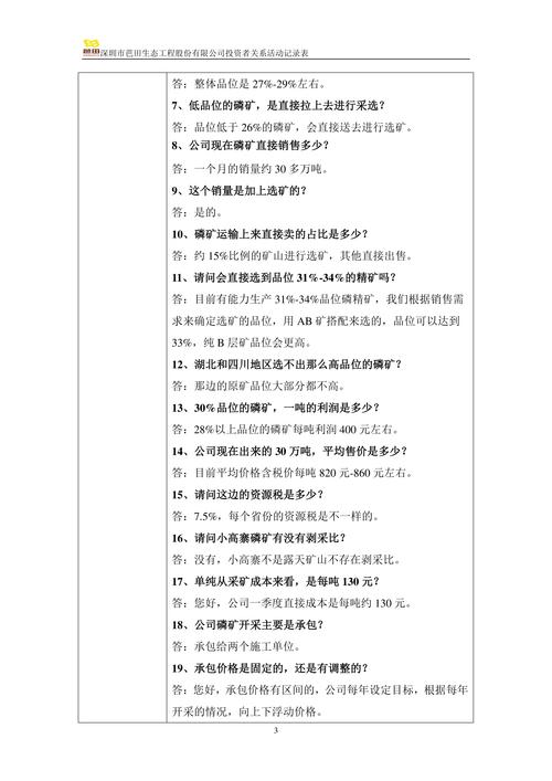 - 成本下降: 若主要原材料价格(如磷矿石)进入下行周期,公司的成本压力将显著减轻,盈利空间将打开。