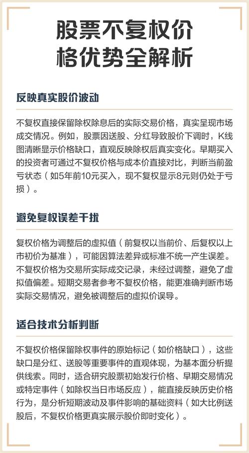 - 极少分红的公司:如果一家公司上市以来从未分红或送股,那么它的股价也就没有“断层”,自然不需要复权。
