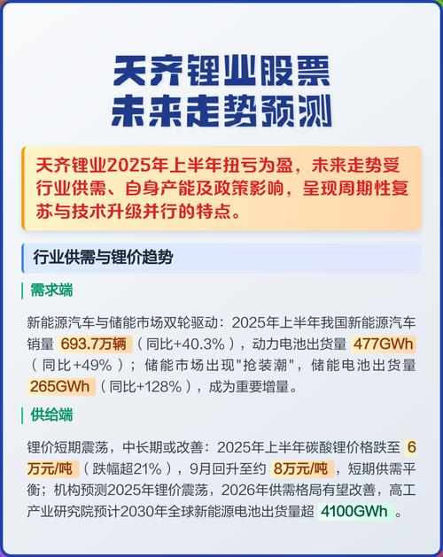- 短期波动: 股价与锂价高度相关,而锂价受宏观经济、供需关系、库存等多重因素影响,波动性极大,短期内股价会跟随锂价的预期和实际数据进行剧烈震荡。