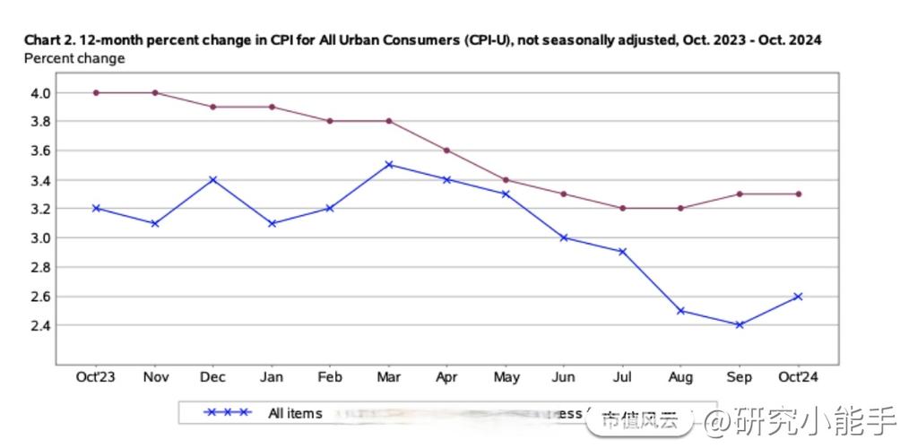 - CPI同比:与去年同期相比的变化,这是美联储最关注的指标之一,衡量的是通货膨胀的长期趋势。