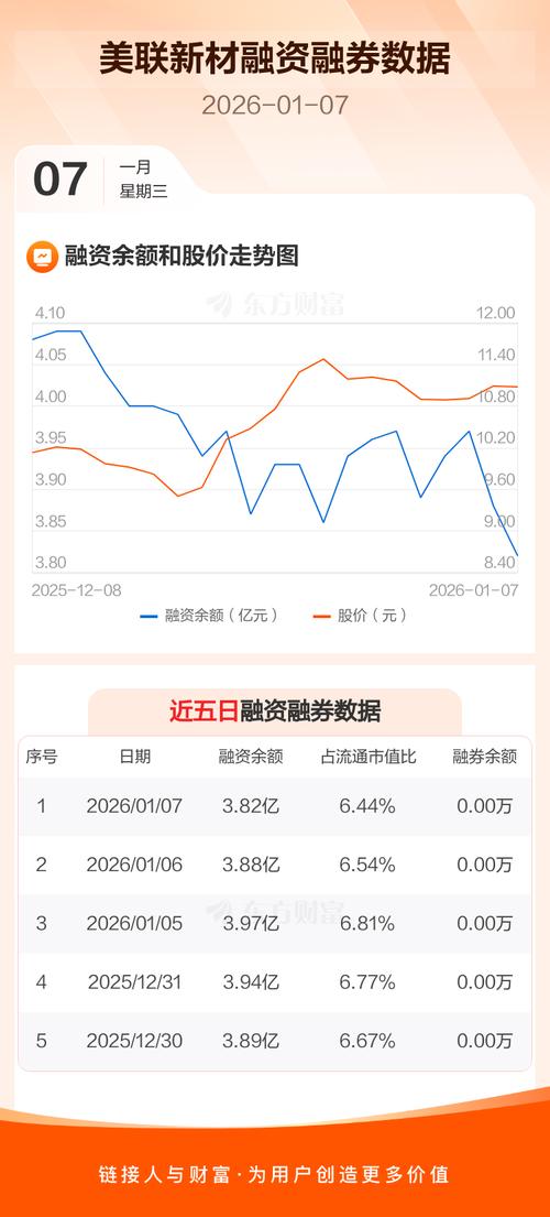 - 近五日表现: 在过去五个交易日里,美联新材的走势并不稳定,累计涨跌幅为 -2.46%,表现弱于大盘。