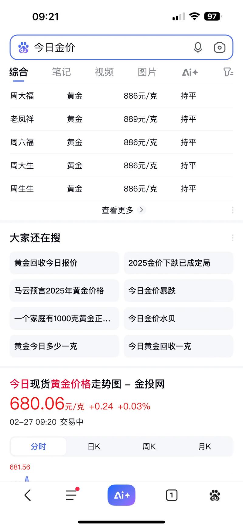直接在百度或Google搜索“实时金价”或“黄金价格”,搜索结果会直接显示一个动态更新的价格卡片,非常方便,但请注意,这个价格通常是一个中间参考价,并非交易价。