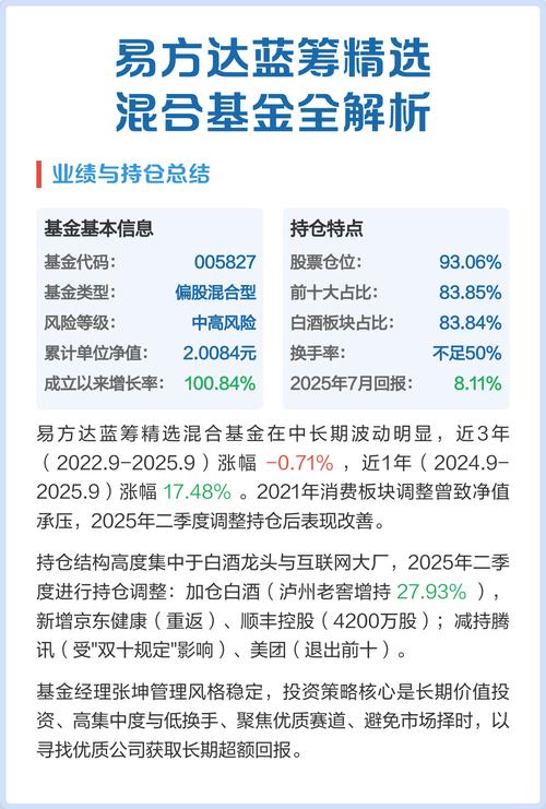 - 解读: 这是一只高仓位运作的偏股混合型基金,基金经理张坤将绝大部分资产投资于股票市场,以追求更高的长期回报,因此净值波动会比较大。