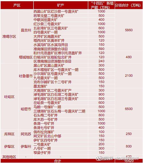 (图片来源网络,侵删)- 煤炭: 拥有新疆哈密地区丰富的煤炭资源,是公司主要的收入和利润来源之一,煤炭价格的波动直接影响公司业绩。