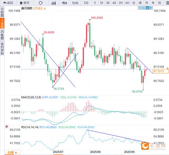 日K线图是技术分析的基础,每一根K线代表了一个交易日的价格信息(开盘价、收盘价、最高价、最低价),通过观察K线组合、趋势线和各种技术指标,我们可以判断美元的强弱和未来可能的走向。