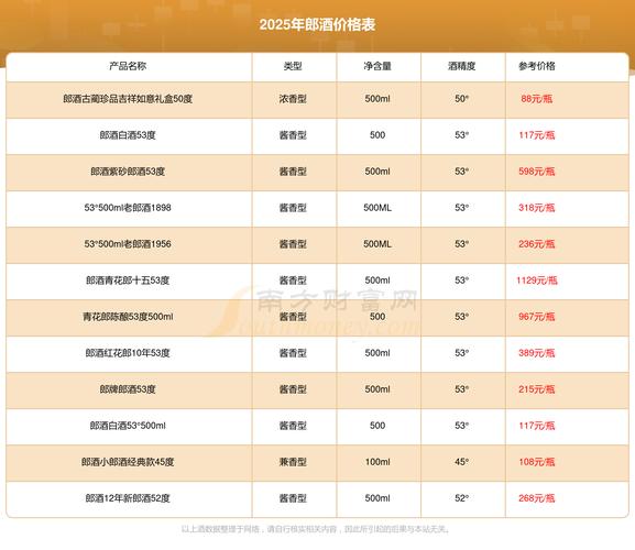 市场地位:郎酒是中国白酒行业的头部企业之一,位列“茅五剑”(茅台、五粮液、剑南春)之后,是“酱香型”白酒的第二大巨头(仅次于茅台),其核心产品包括: