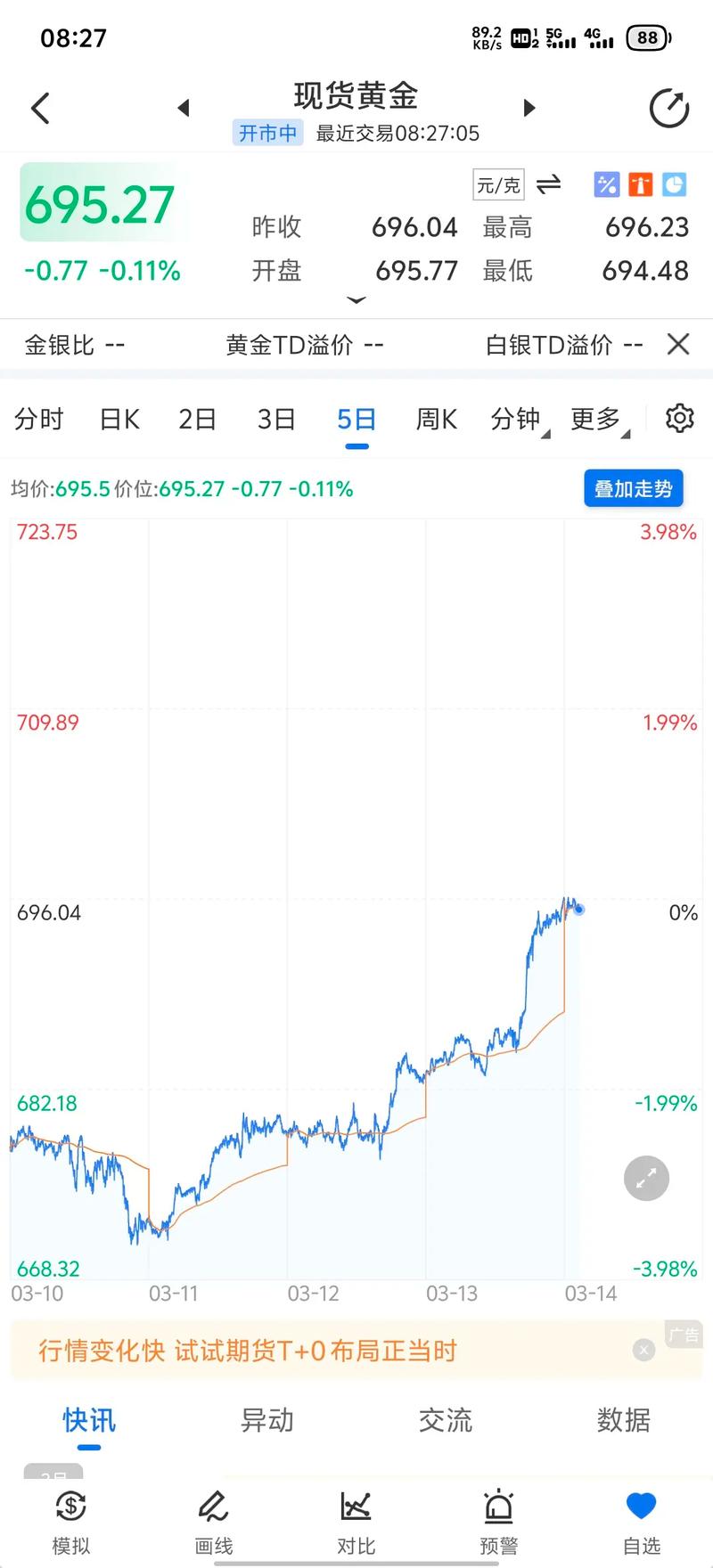 - 点差:买入价和卖出价之间的差额,是银行的主要利润来源之一,这个差值会根据产品类型(账户金还是实物金)和市场波动而变化。